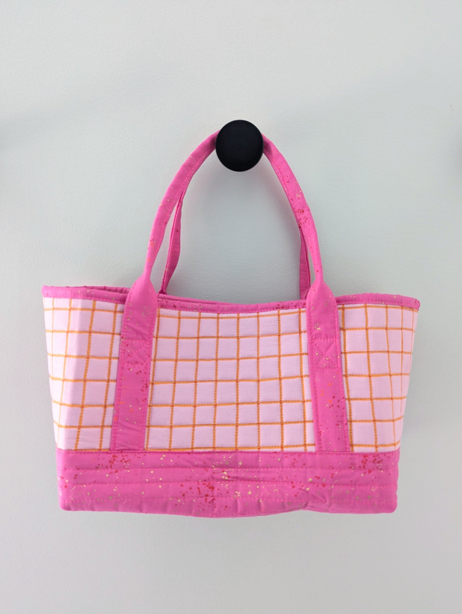 Made from the popular Altoona Tote pattern, this mini quilted bag is perfect for storing fabric or an Easter basket.