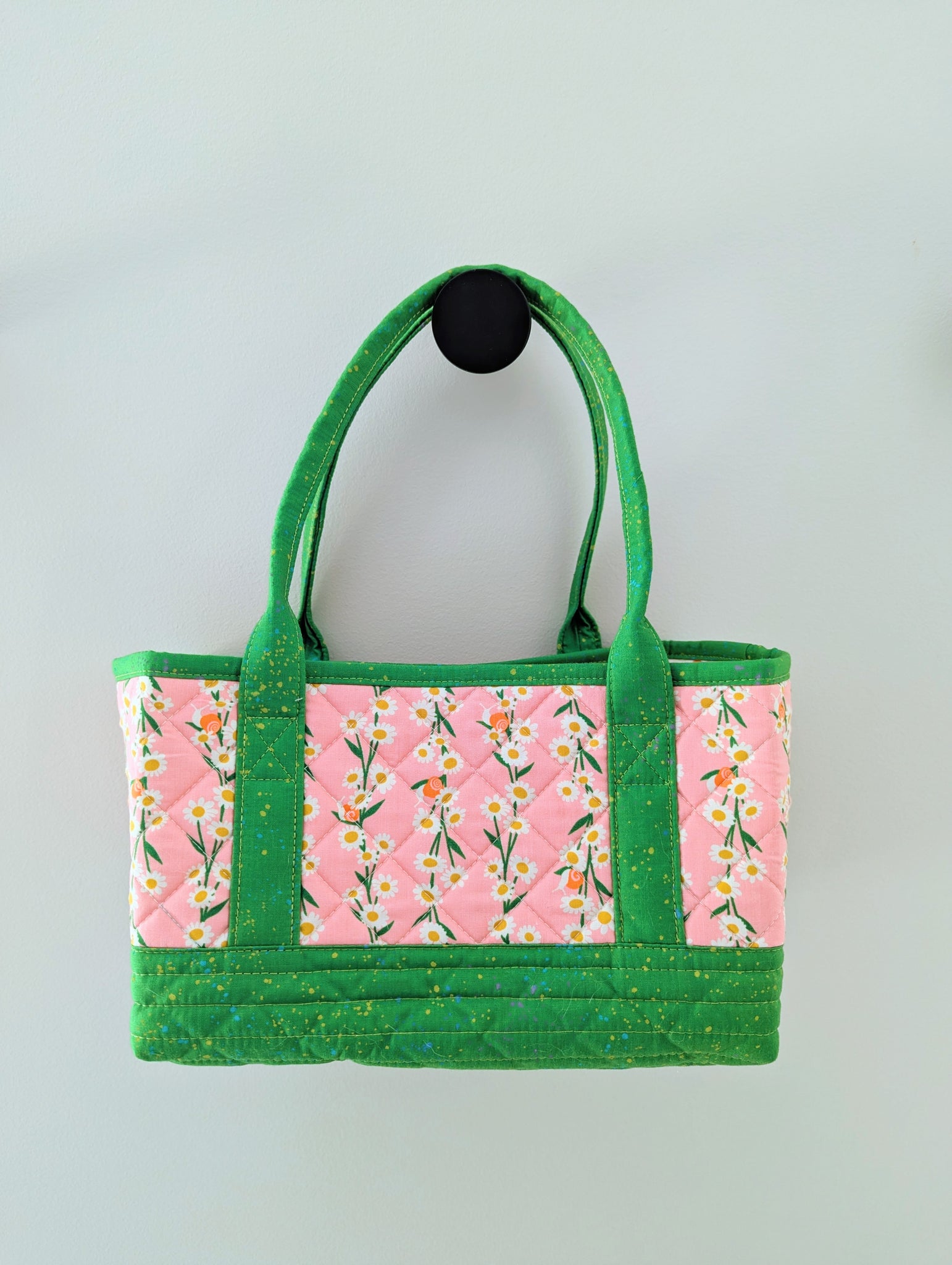 Made from the popular Altoona Tote pattern, this mini quilted bag is perfect for storing fabric or an Easter basket.